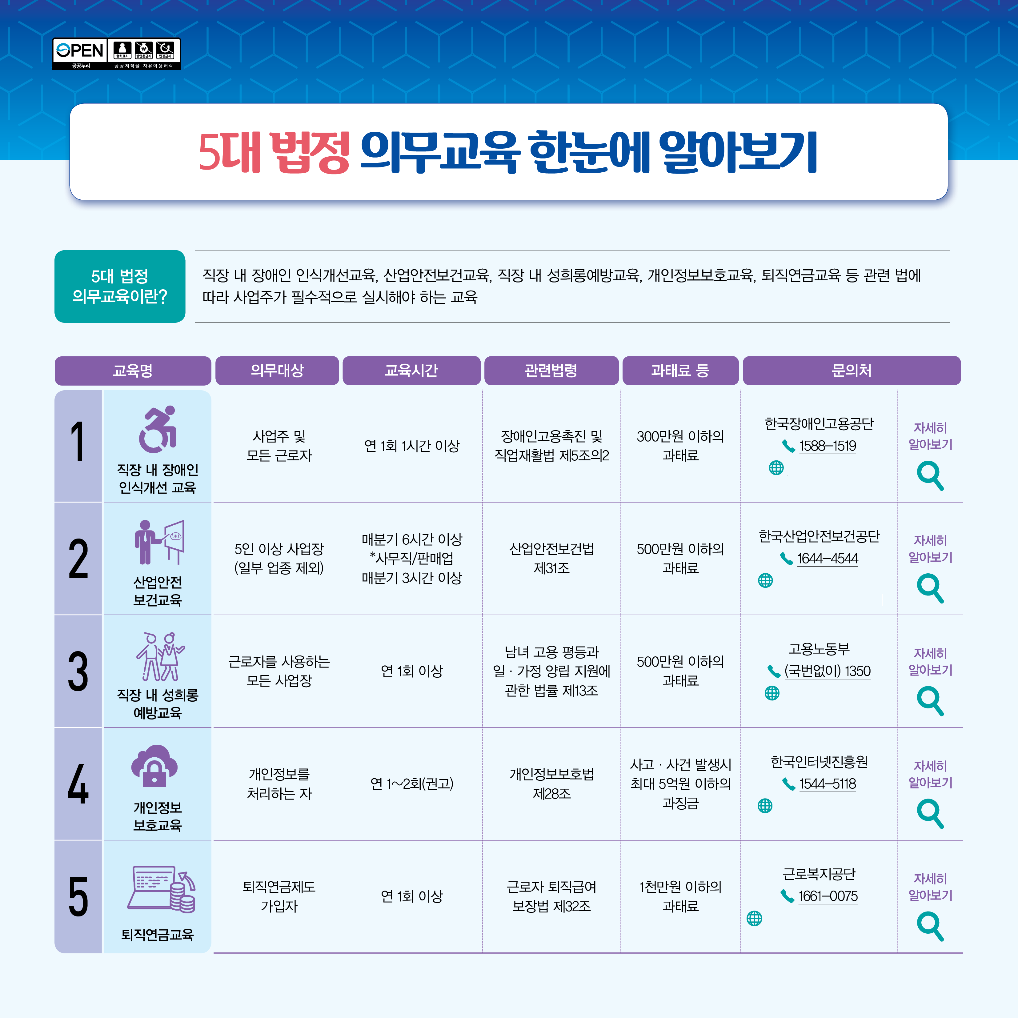 직장인이 반드시 이수해야 하는 법정 의무교육의 종류별 교육 내용과 시간 기준을 쉽게 정리했습니다. 빠르게 확인하려면 아래 버튼을 클릭하세요.